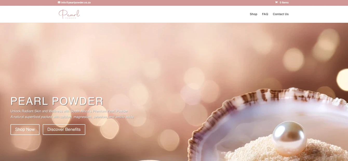 Pearl Powder South Africa is our own passion project: a shimmering superfood celebrated for its time-honoured healing properties. We handled everything in-house—from delicate logo work, luxe eco-friendly labelling and packaging, to a sleek WooCommerce storefront that ships pearl-powered wellness nationwide. When we believe in a product, we showcase it—and this store shines.